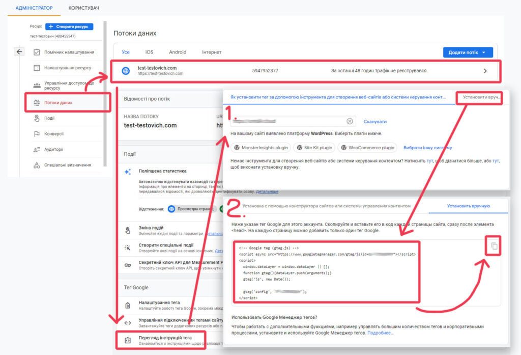 Підключення Google Analytics 4 за допомогою коду на веб-сайт
