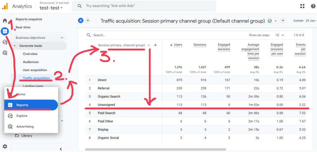 How to solve the problem of Unassigned traffic in Google Analytics 4