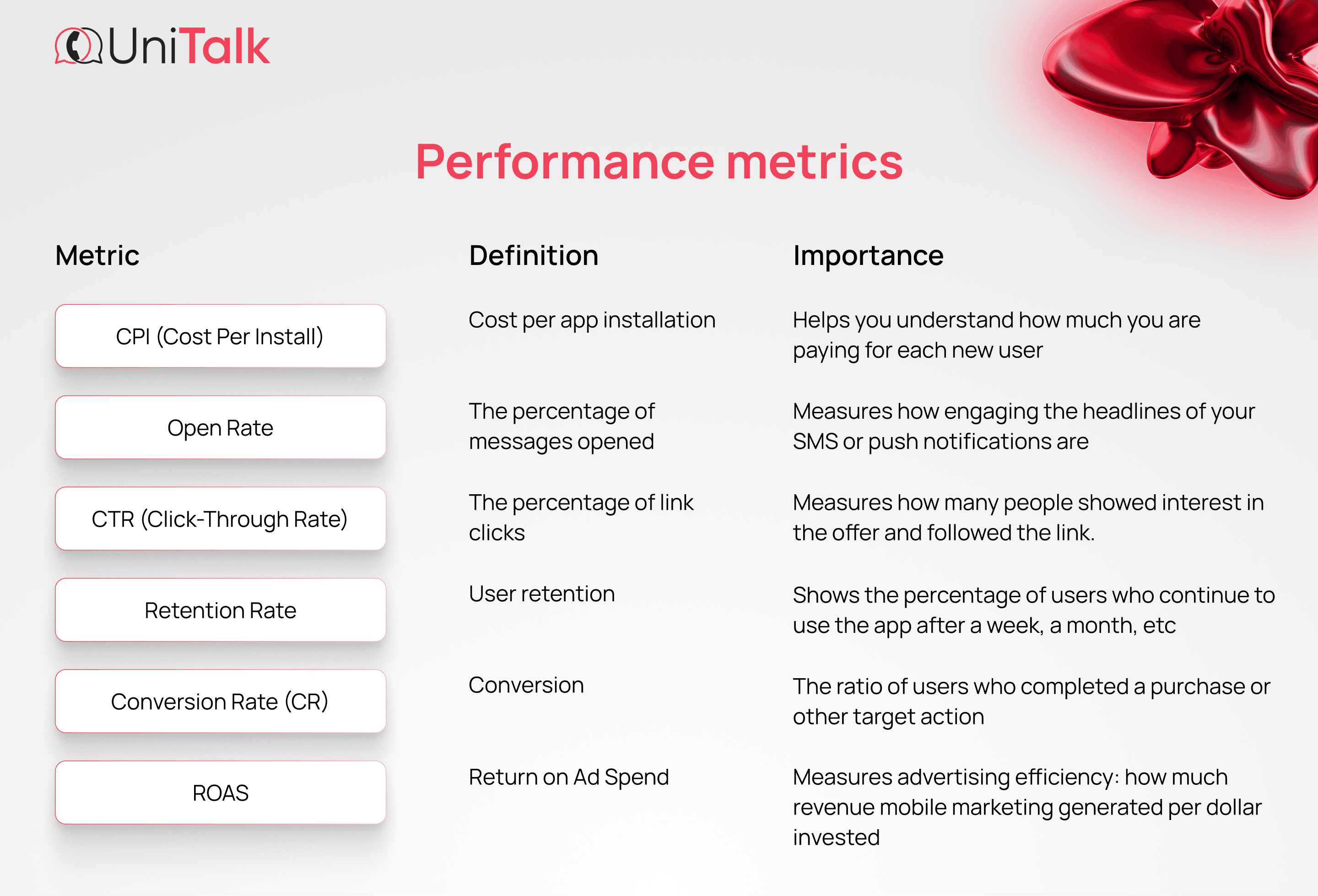 Mobile marketing includes any communication method through mobile gadgets: SMS and Viber mailings, push notifications, mobile applications, in-app advertising, QR codes, mobile-optimized emails, and voice bots.