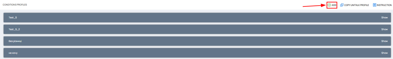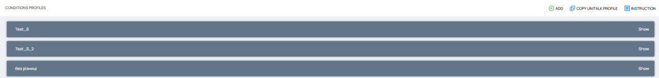 Copy UniTalk profile – a button that allows you to copy the profiles of conditions that we have previously created. At the moment, one public profile of conditions is available in Ukrainian and Russian – consent