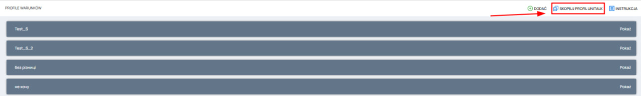 To copy a condition profile, click the “Copy” button. In this case, a duplicate of this condition profile will appear with the “Copy” prefix.