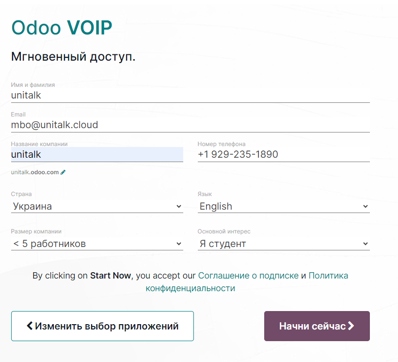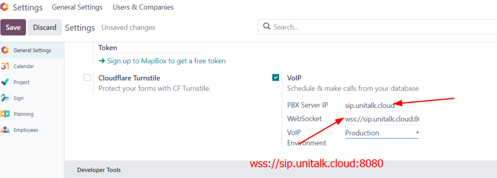 Connect and configure UniTalk IP telephony integration with Odoo CRM