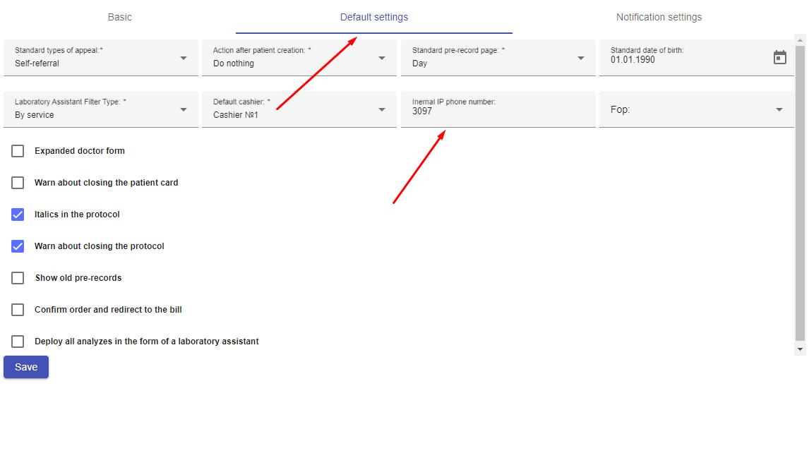 4. Add an internal SIP line number to call directly from Clinica Web: