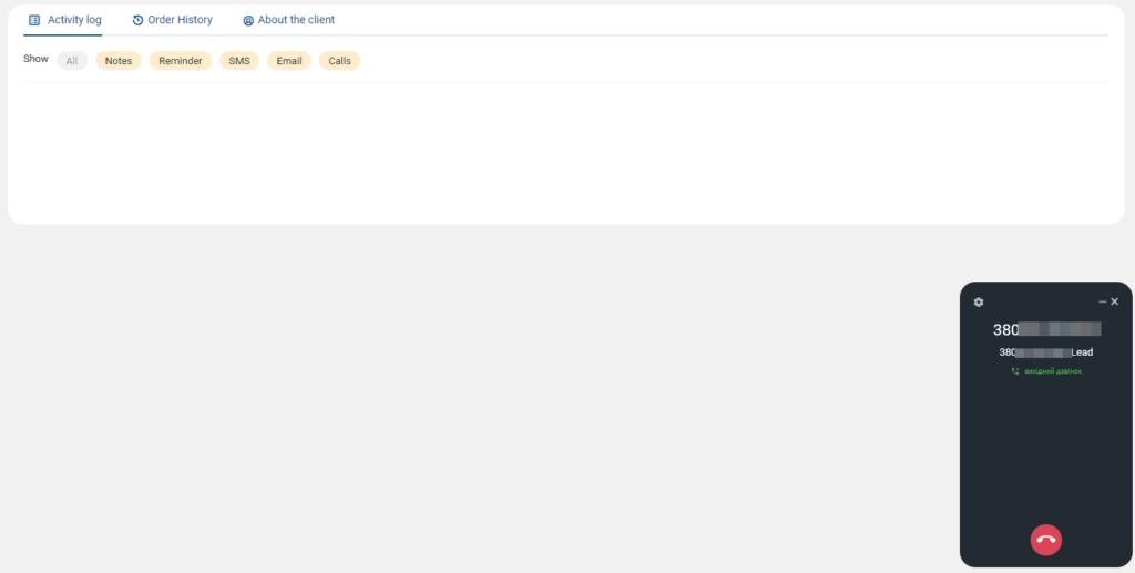 9. You can already make calls from CRM. To do this, go to the customer’s card and click the Call button or the icon next to the contact’s phone number.