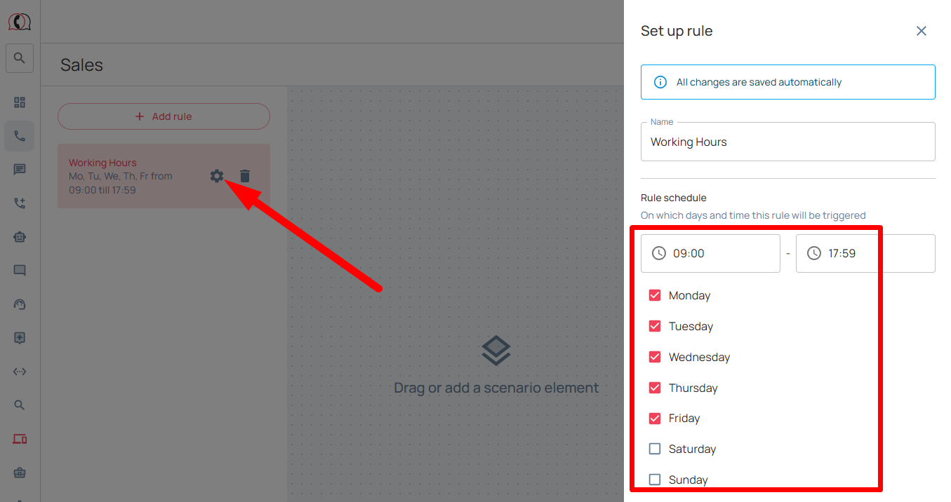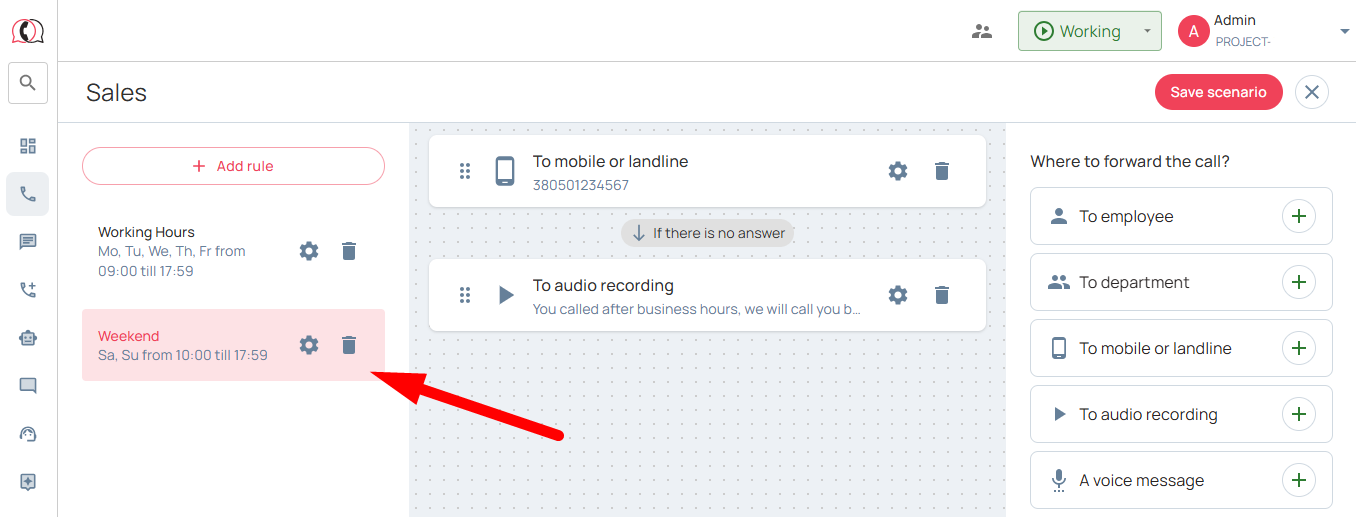 6. Next, if necessary, set up a rule for distributing incoming calls on non-working days and hours. Below is an example of a typical scheme that is suitable for most companies: