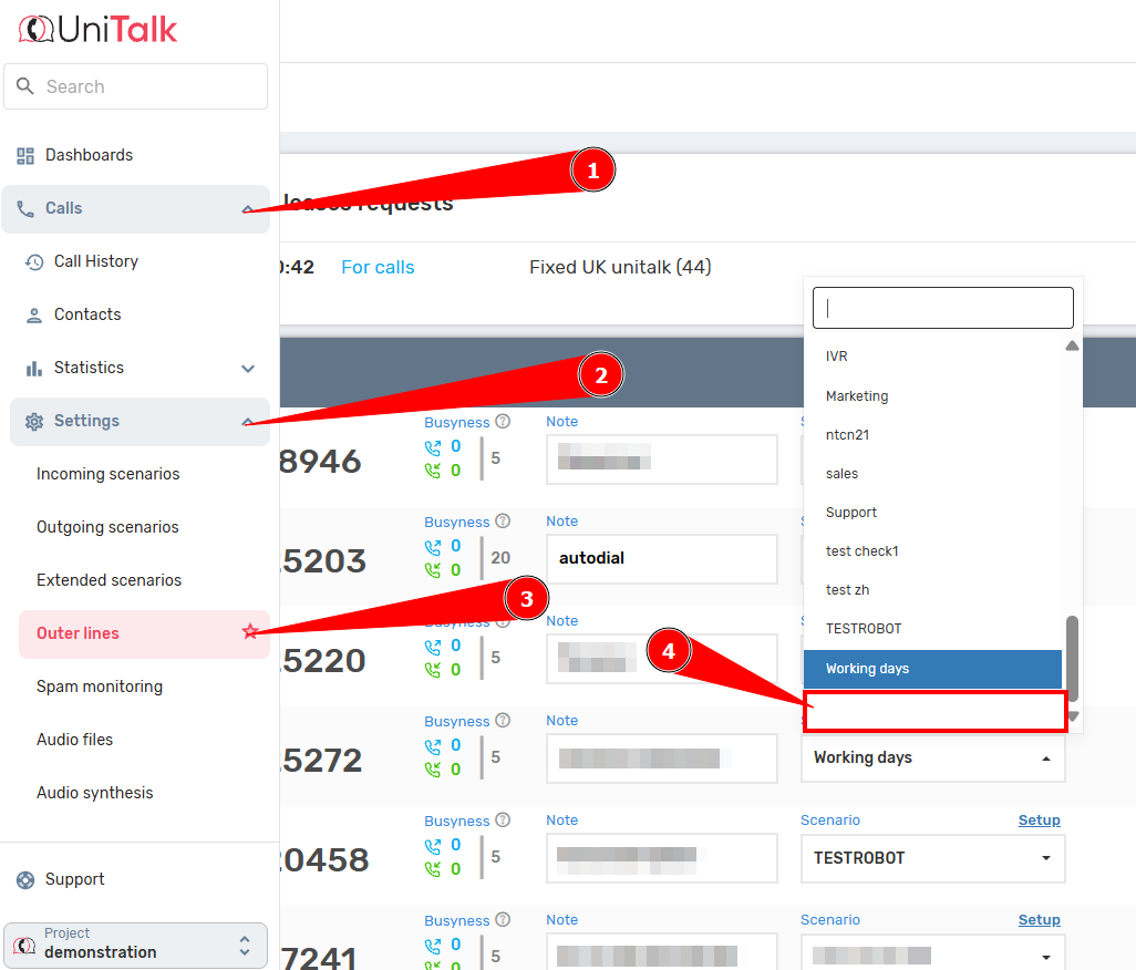 In UniTalk personal account, you can create flexible schemes for distributing and redirecting incoming calls to solve any business problems.