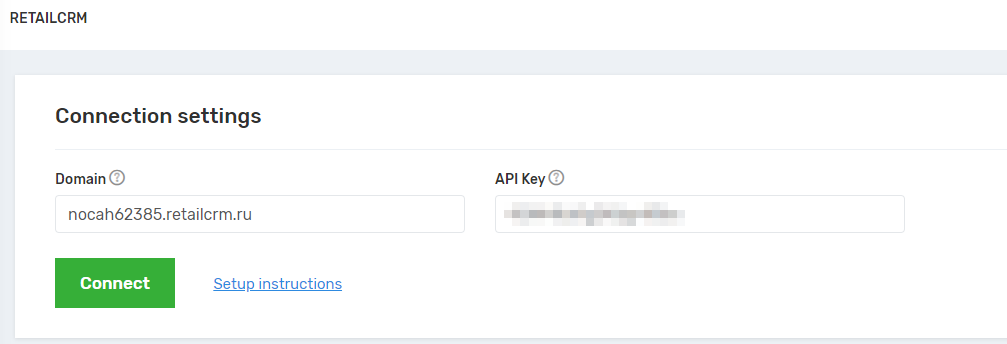 3. Then go to the “Integrations – RetailCRM” menu in your UniTalk personal account. Enter the domain of your account in RetailCRM and the API key. Click the “Connect” button.