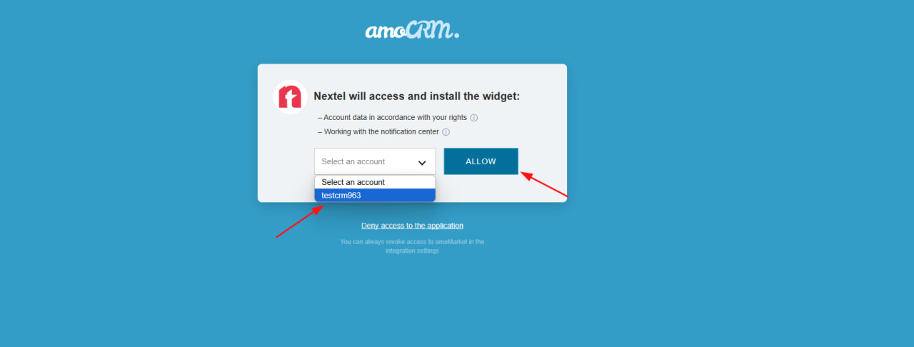 4. After connecting, the following message will appear on the AmoCRM page