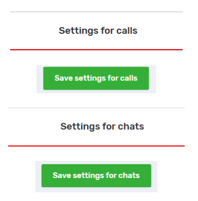The AMO/KOMMO integration page contains 2 blocks of settings – for calls and for chats. Each of these blocks has separate settings and its own button for saving settings*.
