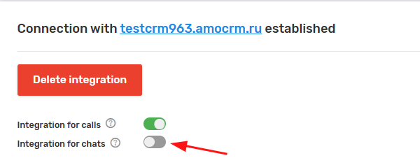 If you need integration for only one of the areas (for example, only for chats), turn on the corresponding switch and turn off the other.
