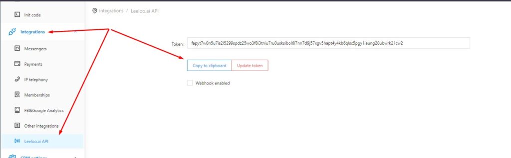 - In your UniTalk personal cabinet in the section of integration with Leeloo.ai in the “Settings” block, enable the checkboxes to perform the corresponding actions and set the required field values.