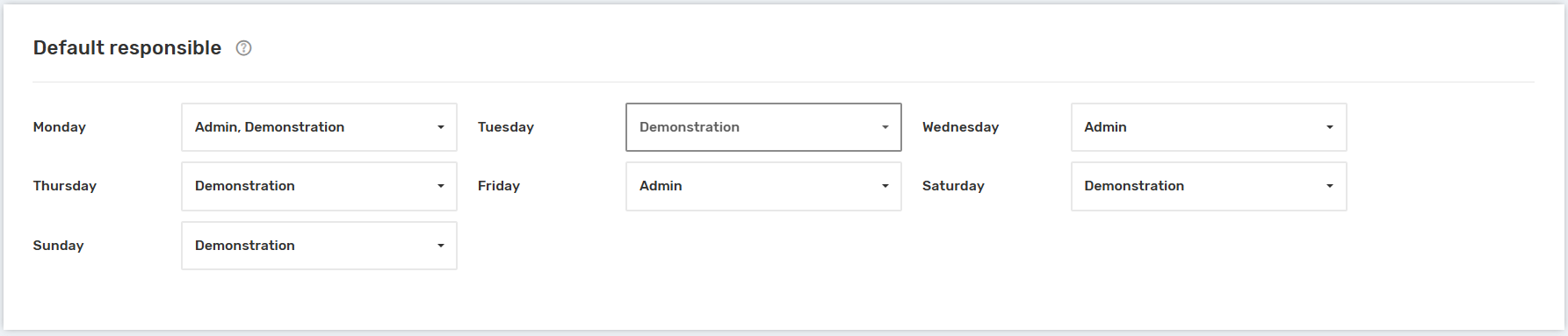 Similar to the settings for calls, you can assign an agent to each day of the week. If for some reason the responsible person cannot be identified automatically, the created entity (contact, deal, or lead) will be assigned to the agent specified in this field.