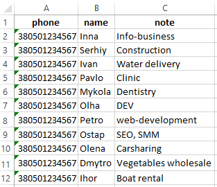- Numbers must be in international format (+380… or 380…). Spaces and non-numeric characters are removed automatically;