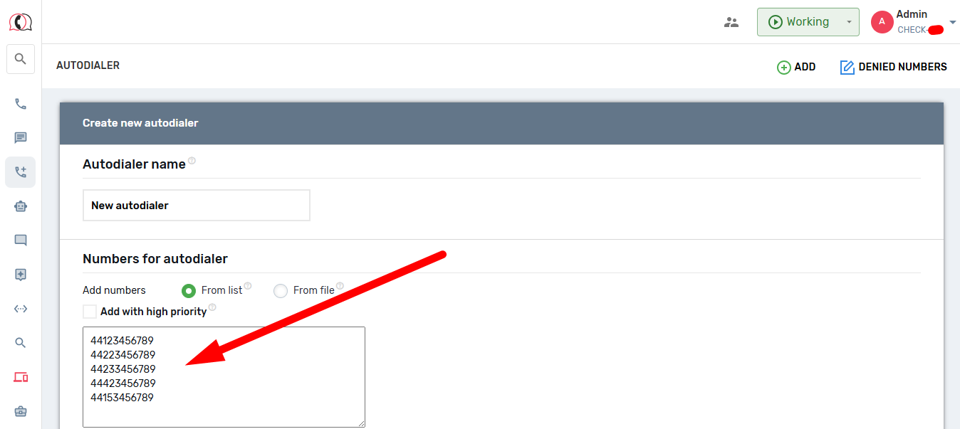 Contacts can be added with or without priority. If you turn on the “High priority” setting and then download a list of numbers, all numbers from this list will be priority and will be called in the first priority. If you add numbers not including the “High Priority” setting, they will be added to the end of the list.