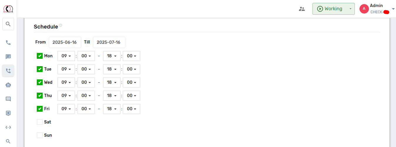 Calling schedule. By default, a standard (as for Kyiv) work week is selected. If your clients are legal entities and plan to make phone calls during working hours, then “it’s ok the way it is!”. The best conversion is achieved during the lunch and afternoon hours.