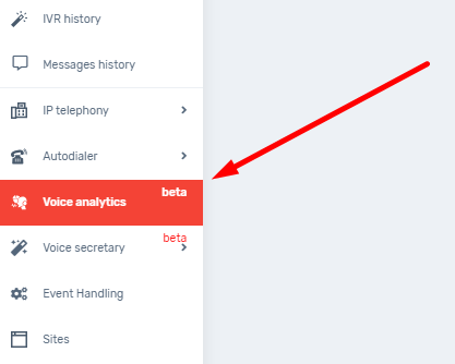 1.Go to your UniTalk personal cabinet, go to the Speech Analytics page. If you do not see this page, you need to contact support to activate this functionality.