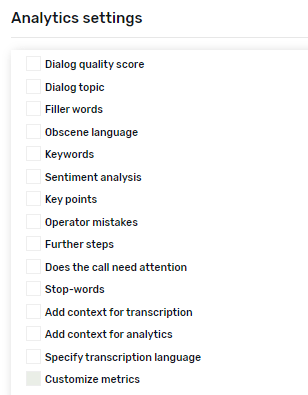 - customize metrics – define the parameters that are used to measure and evaluate dialogs, allowing you to build more accurate analytics specifically for your business and possible dialog topics;
