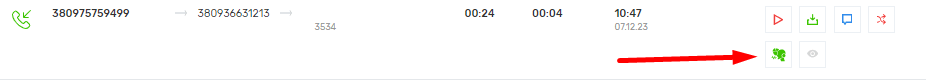 On the “Call History” page, there is a separate button next to the call that opens analytics for this call. If the button is not displayed, this call has not been analyzed for some reason (the appropriate analytics profile has not been found, analytics is not available for this project, etc.).