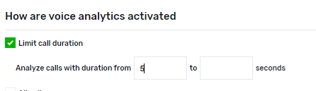 limit call duration – a setting that allows you to select a range of call durations that are subject to analytics.