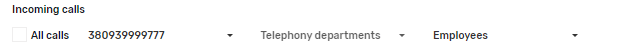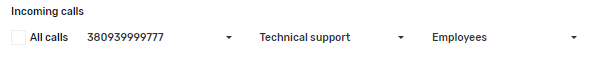 - incoming calls – analyze incoming calls. You can filter all calls or calls by external line, by employee departments, by individual employees.