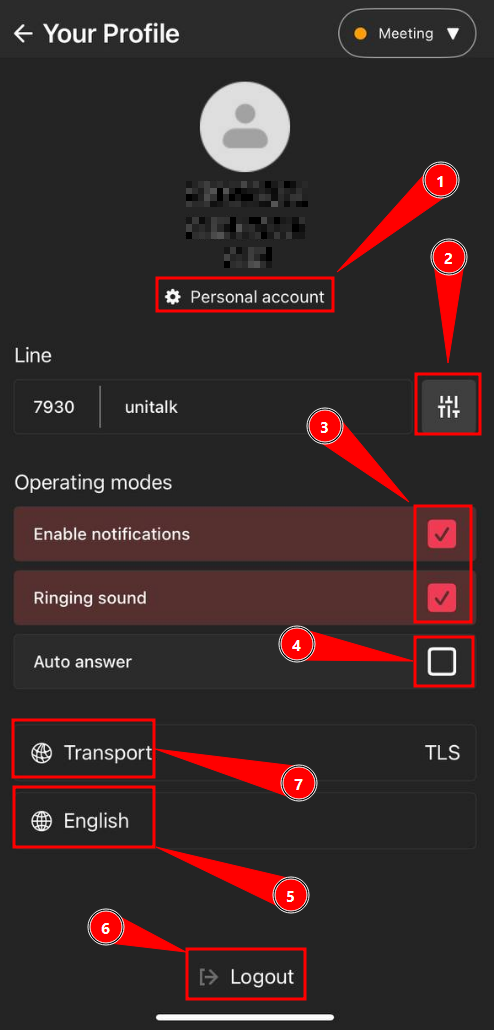You can also log in to the app using your SIP line credentials. In this case, the SIP line does not need to be assigned to a specific user in the UniTalk project.