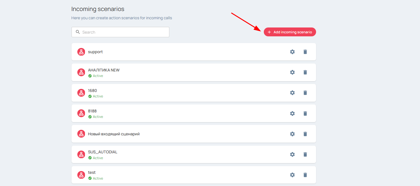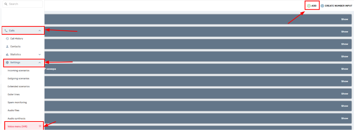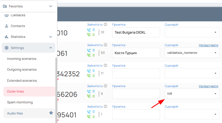 Go to the section Calls – External lines and bind the incoming script with the voice menu “IVR” to the number (s).