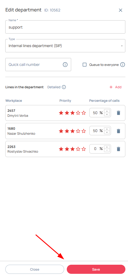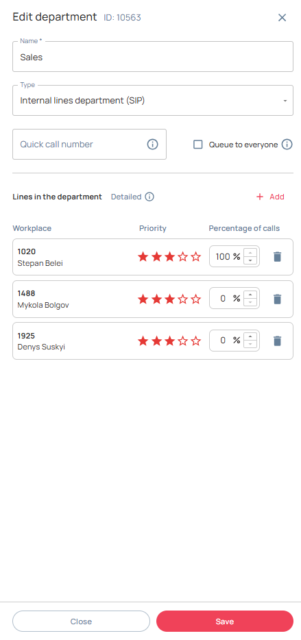10. Specify in “waiting” the time in seconds during which an incoming call will be sent to all employees with an active and idle SIP line from the specified department.