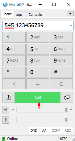 It is also possible to specify the direction of the call manually by specifying the country code to dial.