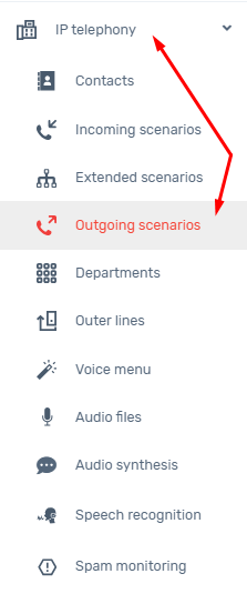 To configure, you need to go to the IP telephony – Outgoing scripts section.