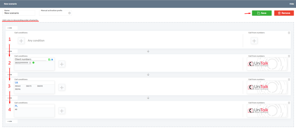 Once you have specified several rules or conditions for making a call, you need to arrange them in order of priority: