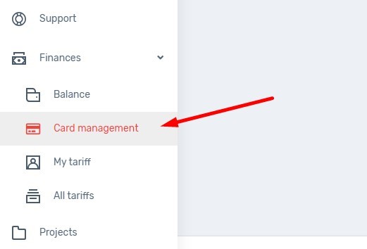 2. Go to the Finance – Card management section
