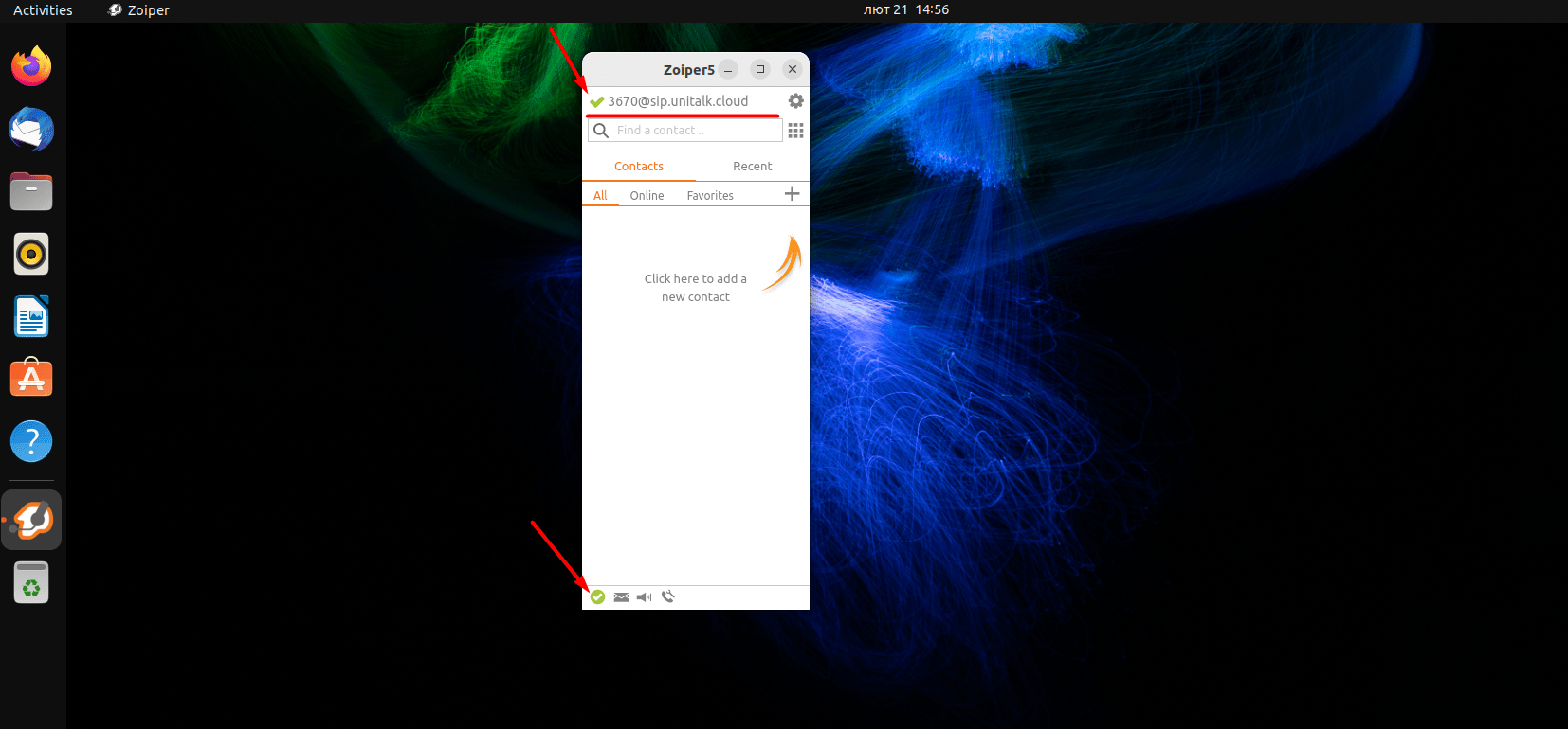 The appearance of the green checkmark in ZoiPer indicates that your internal line is active and ready for use. You can now receive and make calls directly from your Ubuntu system, taking full advantage of UniTalk cloud telephony. Remember that a high-quality internet connection is essential for stable softphone performance. With UniTalk and ZoiPer, your workspace becomes mobile, professional, and highly efficient.