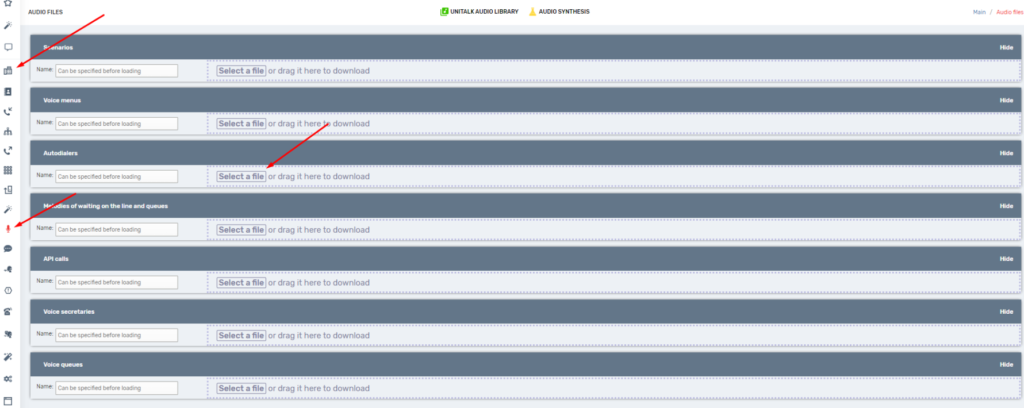The second stage (informational). Uploading audio files to the UniTalk library.