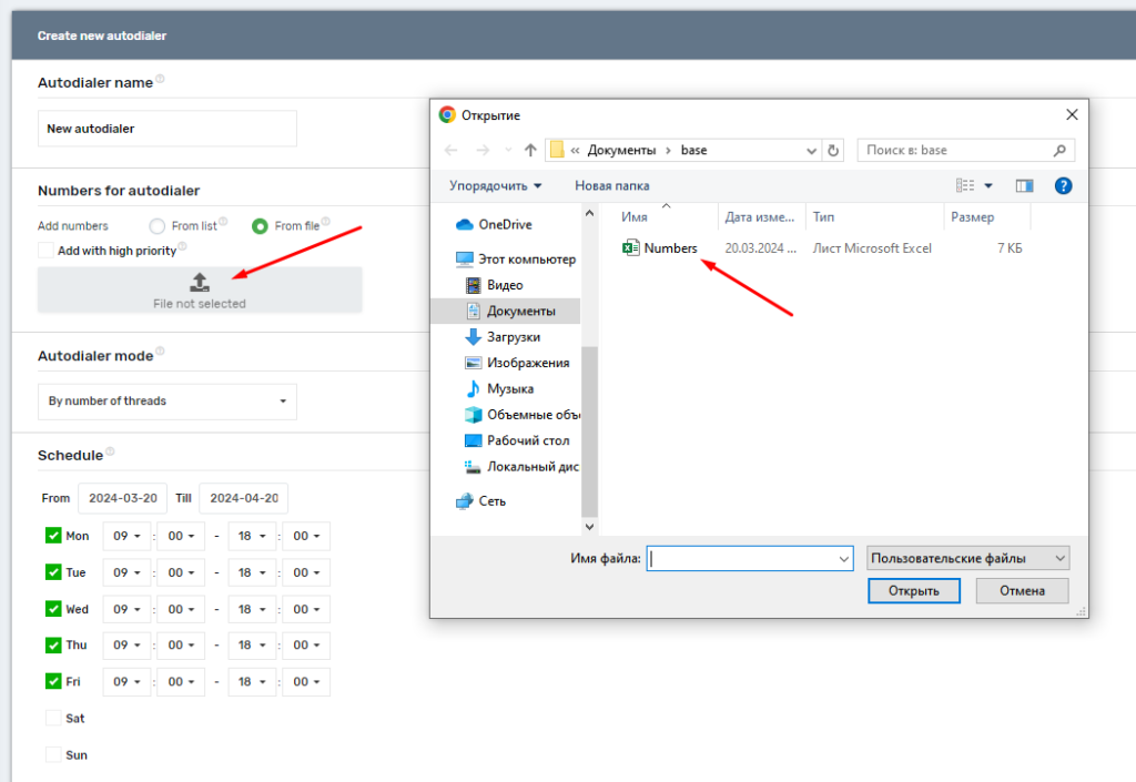There are 2 options: one for cases when you need to upload many numbers at once, the other for regular upload of a small number of numbers that are easy to select, copy and paste