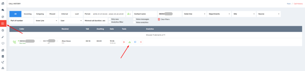 - Go to the UniTalk call history and download the recording of this call to your PC.