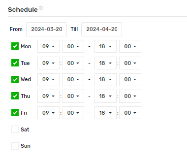 - Call Schedule. By default, a standard (as for Kiev) working week is selected.
