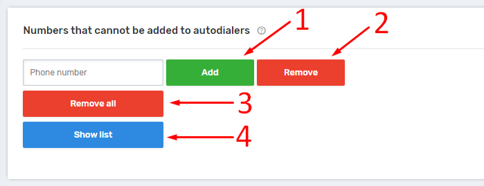 You can view the whole list of numbers that are not allowed to make calls on the Autodialer page