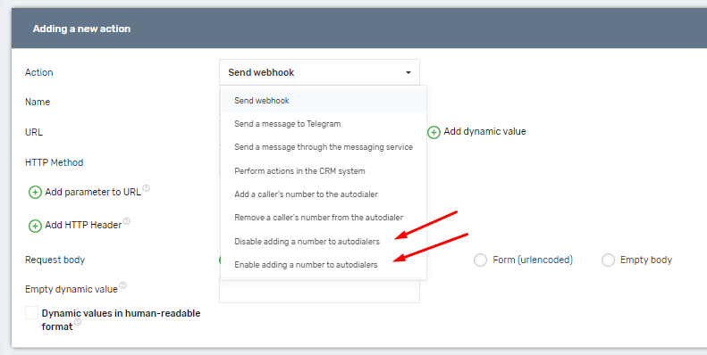 In dialling there are always unsuccessful calls, some people do not pick up the phone or for other reasons the call did not take place. All such numbers can be called again. You can specify the number of repeated calls, the interval between repeated calls, repeated calls with or without priority and select the call statuses of the departments of those who do not need to be called back. For example, those who picked up the phone and dropped the call (status – Answered (dropped)).