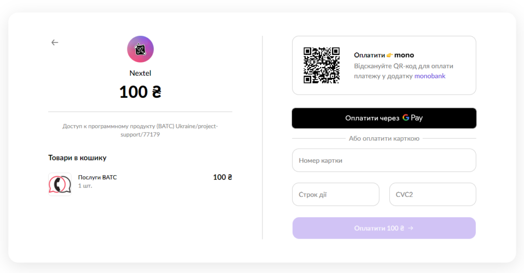 Click “Pay” to open the page for logging into the Monobank payment system: