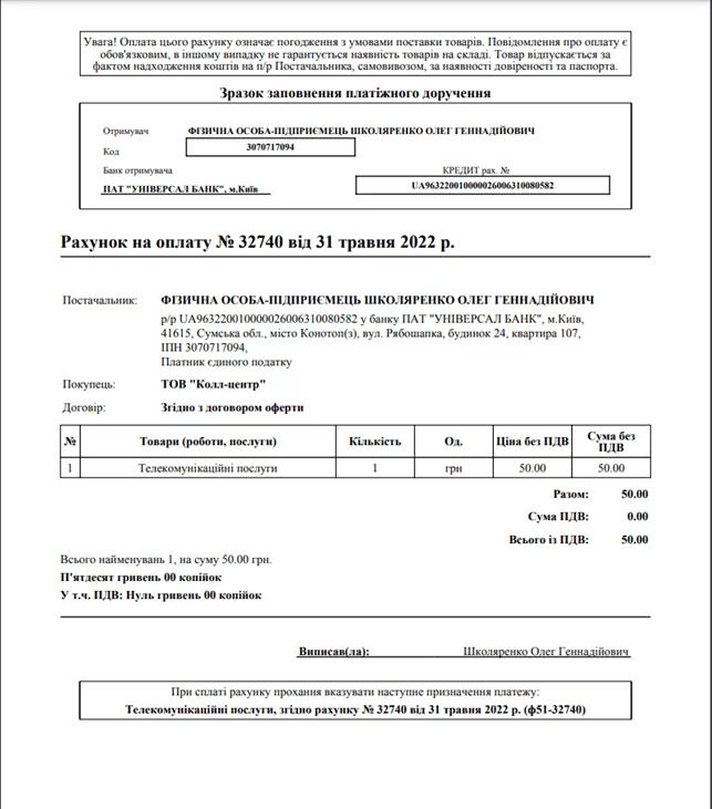 Оплата за безготівковим розрахунком (згідно рахунку) можливо у будь-якому банку України. Термін надходження коштів на баланс – 3 робочих дні.