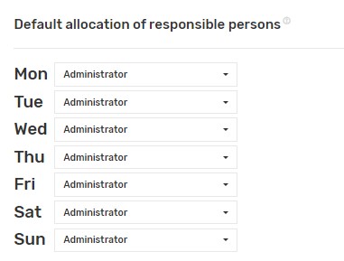 Similar to call settings, you can assign an operator for each day of the week. If for some reason it is not possible to automatically determine who is responsible, the created entity (contact or deal) will be assigned to the operator specified in this field.
