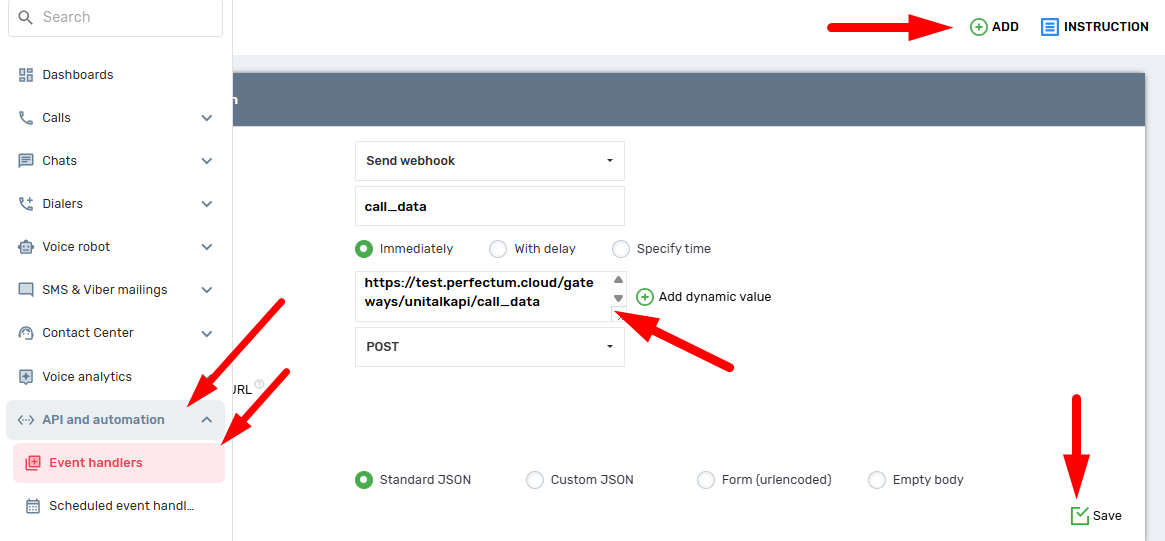 - go to the Unitalk personal account and in the sidebar go to the “Event Processing” section using the “API and Automation” section