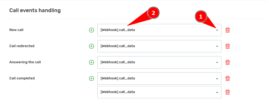 Step 4. Next, find the “Call Event Handling” section in the API section and select the previously created webhook.