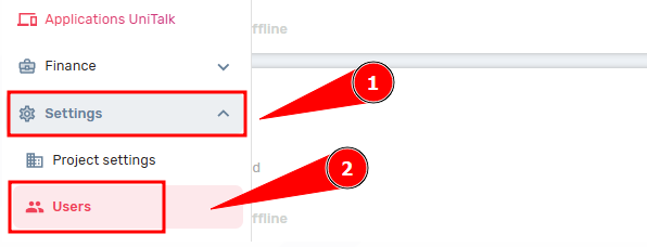 Step 5. Set up extension numbers for employees. Open the sidebar and select the Settings – Users section.