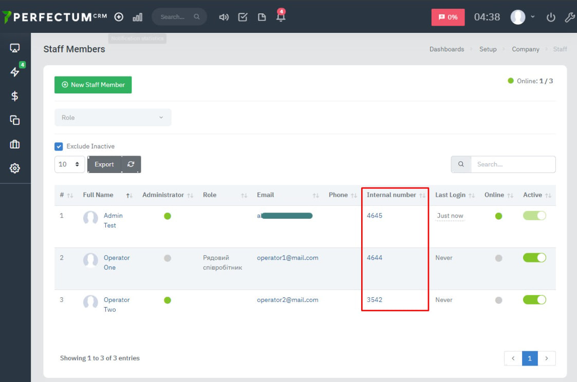 Go to Settings → Company → Employees, open the employee’s card and in the Extension number field specify the extension number of the corresponding employee. After that, click the “Save” button.