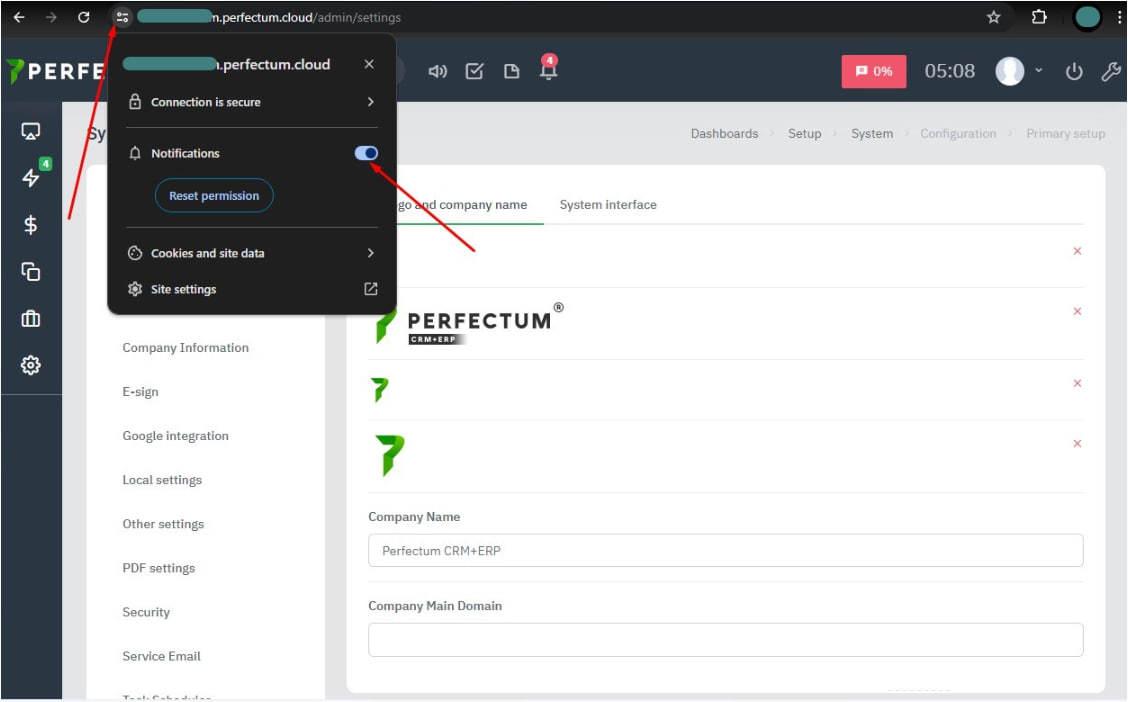 To set up notifications when you receive an incoming call, you need to configure Push notifications. After setting up, make sure you have notifications enabled in your browser.