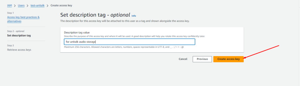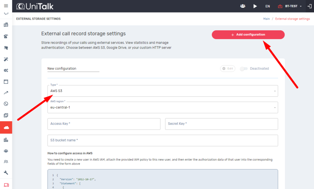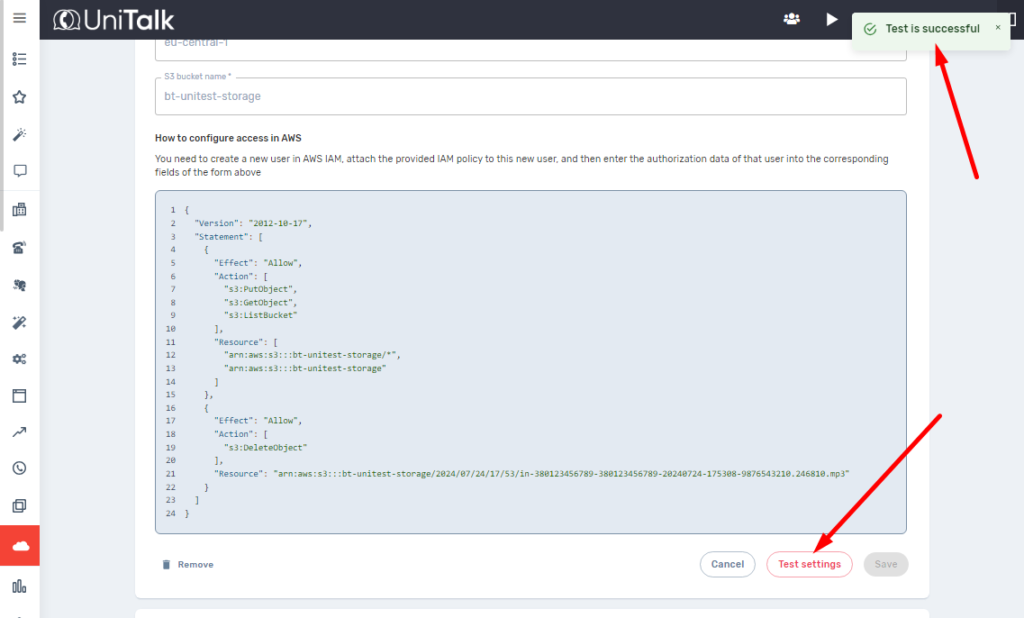 3) Creating the access policy needed to download audio from Unitalk to S3
