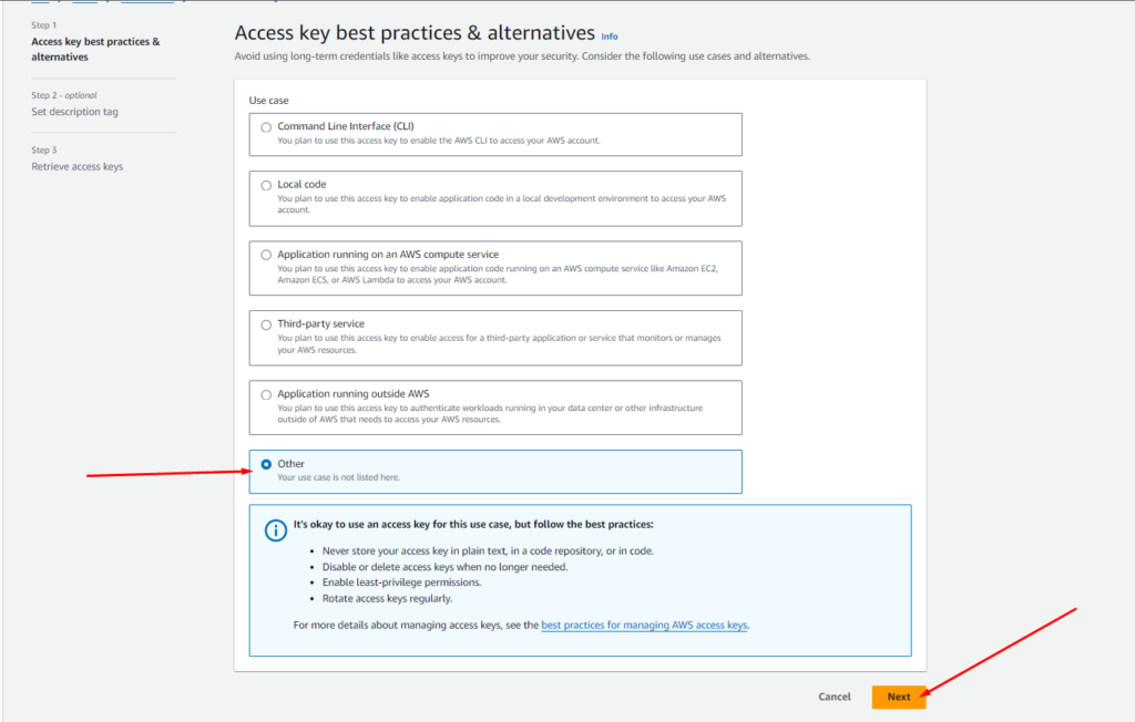 – We can choose any type of key, in this example we choose “Other” and proceed further