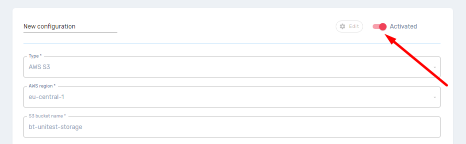 2) We add a new configuration and choose the storage type “AWS S3”.