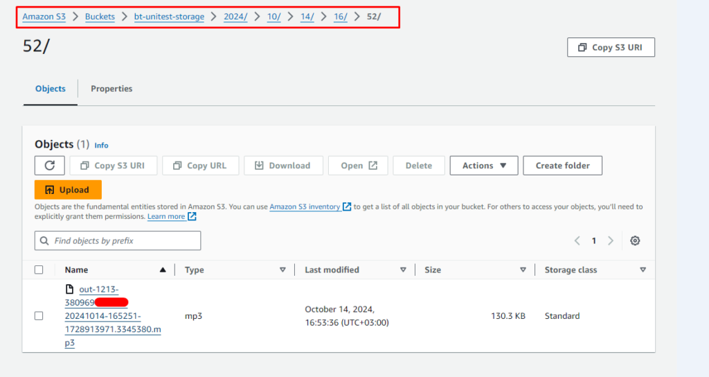 After activating the configuration of the external storage, audio conversations will be transferred to the specified S3-bucket. To download records, directories will be automatically created in the format: